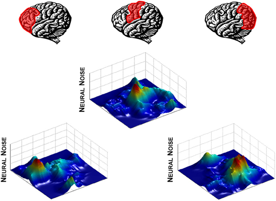 Recent evidence has suggested that neurotransmitters such as dopamine (DA) and glutamate (GLU) play a role in neural noise modulation for optimal functioning of the nervous system (Hong & Rebec, 2012). The authors suggested that neural noise is highest at both low and high levels of DA and GLU. With aging and neurodegenerative conditions such as Alzheimer’s disease, Huntington’s disease, and Parkinson’s disease, the range over which DA and GLU is decreased leads to inflexibility in brain activity and behaviour. As the capacity to modulate neural noise is restricted, the ability to shift noise from one brain region to another is reduced, which leads to constant levels of noise (signal-noise ratios) across the entire brain (Hong & Rebec, 2012). This constant level of neuronal noise may prevent highs and lows in noise levels and brain activation variability characteristics of a healthy nervous system. Below is an image that explains why constant noise levels can be detrimental.