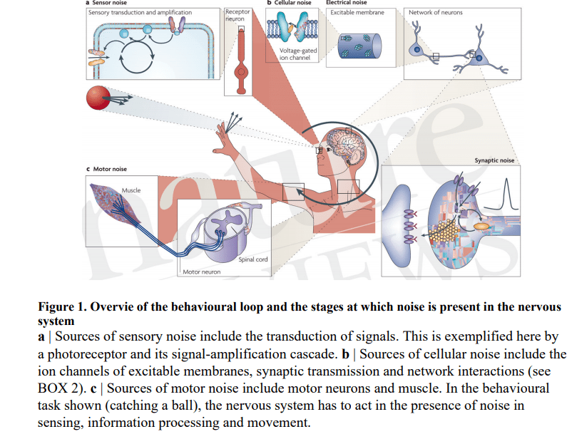 Faisal, A. A., Selen, L. P., & Wolpert, D. M. (2008). Noise in the nervous system. Nature reviews neuroscience, 9(4), 292-303.